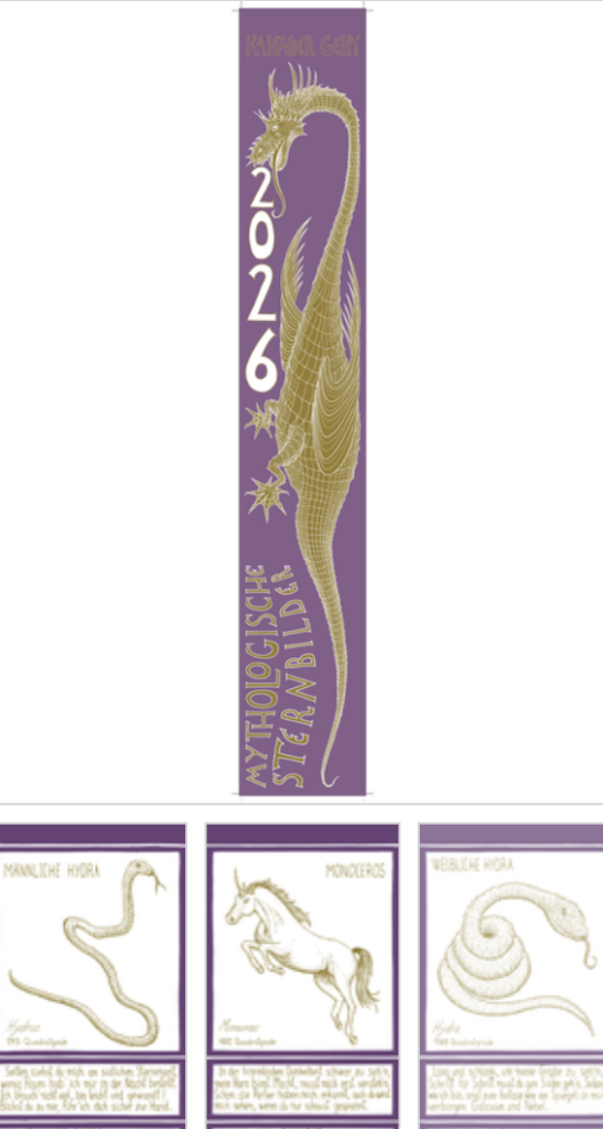 Streifenkalender 15×96 cm, präsentiert in attraktiver Faltschachtel